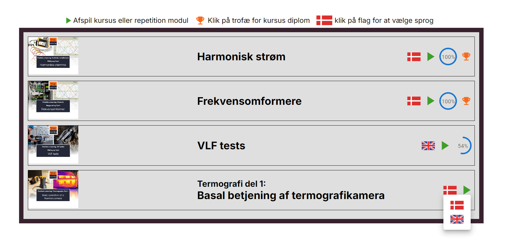 As a user, you get access to the ‘my courses’ page, from where you can deploy the courses. Here you can access course deployment, repetition module, diploma and course progress.